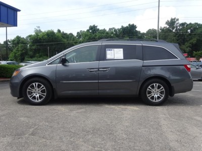 Vehicle Facts: All new in 2011, the 2012 Honda Odyssey carries on the distinction of being fully redesigned, with greater interior functionality, a more distinctive style, improved fuel economy and it is among the first vehicles to earn a 5-Star Crash Test rating in all NHTSA subcategories, earning the best possible overall score * Class-leading achievements for the Odyssey include the highest EPA mileage rating for an 8-passenger minivan (Touring Plus) and the best possible safety ratings from the NHTSA, with a 5-Star Overall Score and a Top Safety Pick rating from the IIHS, a combination no other currently tested minivan can claim * For 2012, items previously available on EX-L models that are now standard on EX models include Bluetooth HandsFreeLink, the intelligent Multi-Information Display with an 8-inch TFT screen, a 2GB CD Library and a USB audio interface * Honda Odyssey comes in a single minivan body style in LX, EX, EX-L, Touring and Touring Elite trim levels with available options that include a rear entertainment system and navigation * Honda Odyssey is powered by a 3.5-liter SOHC 24-valve i-VTEC V6 engine rated at 248 HP at 5700 RPM with a torque rating of 250 lbs.-ft. at 4800 RPM, coupled with a 5-speed automatic transmission * * REASONS TO BUY: Odyssey dramatically departs from conventional minivan styling with a low and wide stance, which adds to vehicle overall stability * Honda Odyssey contains 59 percent high-strength steel content by weight, the most of any Honda built to date and a significant increase from the 35 percent included in the previous generation * Compared to the previous generation, the Honda Odyssey improves front lateral stiffness by 6 percent and rear vertical stiffness by 22 percent * A 4X8 sheet of plywood can fit inside the Odyssey cargo bay with the second-row seats removed, and 10-foot-long 2×4 studs can fit inside the vehicle with the available front console removed * Odyssey EX-L models feature an 8-inch Thin Film Transistor Liquid Crystal Display screen with customizable features, which provides the driver with a variety of information and allows for a personalized wallpaper image * The available Blind Spot Monitoring system offers drivers additional information about conditions around the vehicle by using sensors at each rear corner of the vehicle to detect another vehicle that may be positioned in the driver’s blind spot * Electronic Brake Distribution automatically optimizes braking force between the front and rear wheels depending on passenger and cargo load, reducing the distance it takes Odyssey to stop * Brake Assist senses emergency stopping and applies all available brake boost to maximize vehicle stopping capability * The Odyssey’s hydraulic power steering pump uses a variable displacement design that reduces the constant load on the engine, thereby improving overall efficiency *