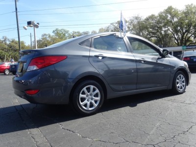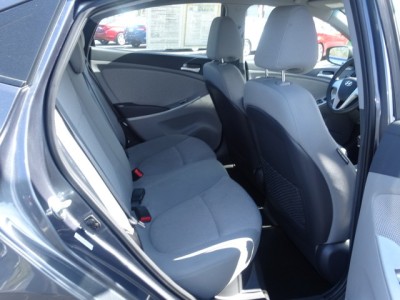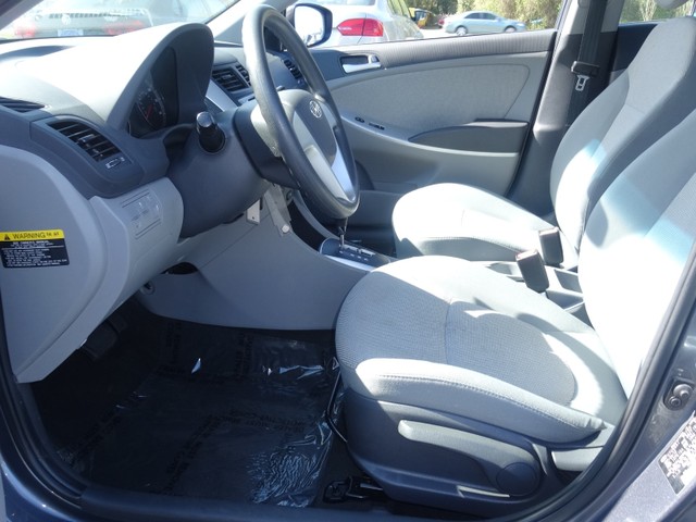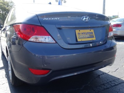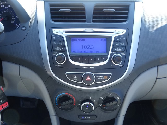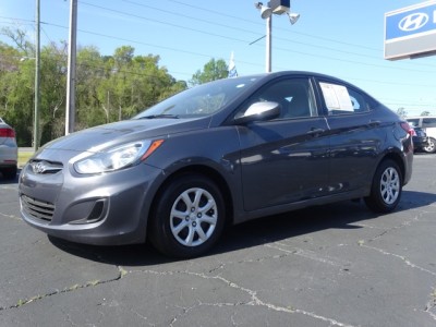 Vehicle Facts: The current generation Hyundai Accent returns for its second year of production with equipment enhancements and advanced technology * Hyundai Accent employs a four-cylinder engine ranked among the 10 Best by Ward’s Automotive; the engine employs Gasoline Direct Injection, the first to introduce GDI to the subcompact category * New for 2013 is standard air conditioning, heated power exterior mirrors, remote keyless entry, AM/FM/satellite/CD/MP3 audio system w/6 speakers, and iPod/USB auxiliary audio inputs * For 2013, a power sunroof is available on SE models * The 2013 Hyundai Accent comes in a 4-door body style in GLS trim or a 5-door body style in GS and SE trims * The 2013 Hyundai Accent is powered by a 1.6-liter DOHC 16-valve I-4 engine rated at 138 HP at 6300 RPM with a torque rating of 123 lb.-ft. at 4850 RPM coupled with a 6-speed manual transmission or optional 6-speed automatic transmission * * REASONS TO BUY: The engine’s Gasoline Direct Injection precisely controls the injection of fuel, improving fuel economy * Dual Continuously Variable Valve Timing increases efficiency and improves fuel economy * A maintenance-free silent roller timing chain increases reliability and reduces operating costs * A Diamond Like Coating helps reduce friction in the valvetrain * Hydraulic engine mounts offer quieter operation * Anti-lock disc brakes help the driver maintain vehicle steering control in slippery conditions and in emergency maneuvers * Electronic brake force distribution is integrated into the ABS, automatically adjusting the braking force to front & rear axles based on the vehicle loading conditions * Five-mph front & rear bumpers help minimize damage in low speed impacts * In the event of hard collisions the steel unibody structure is engineered to dissipate crash energy as its crumple zones deform, while bodyside reinforcements help maintain the integrity of the passenger compartment * Hood buckling creases and safety stops help control the deformation of the hood in a frontal collision * The rear head restraints are shingle-style for improved visibility * Child seat LATCH system in the rear seat area provides a safe & secure place for kids * Front seatbelts are equipped with force limiters and pretensioners that regulate tension in the event of a moderate-to-severe frontal collision * Reinforced bumpers help absorb shock in low-speed accidents * Front disc brakes are engineered with brake pad wear sensors to indicate when pads need replacing * A computer chip in the automatic transmission allows the transaxle to adapt to different driving situations; when necessary the transmission can skip a downshift to reduce the number of shifts when decelerating * A front subframe adds structural rigidity to the vehicle, creating more strength and less torsional stress, which results in a firmness that resists the development of rattles and squeaks *