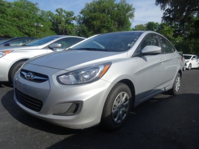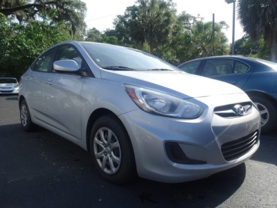 Vehicle Facts: The current generation Hyundai Accent returns for its second year of production with equipment enhancements and advanced technology * Hyundai Accent employs a four-cylinder engine ranked among the 10 Best by Ward’s Automotive; the engine employs Gasoline Direct Injection, the first to introduce GDI to the subcompact category * New for 2013 is standard air conditioning, heated power exterior mirrors, remote keyless entry, AM/FM/satellite/CD/MP3 audio system w/6 speakers, and iPod/USB auxiliary audio inputs * For 2013, a power sunroof is available on SE models * The 2013 Hyundai Accent comes in a 4-door body style in GLS trim or a 5-door body style in GS and SE trims * The 2013 Hyundai Accent is powered by a 1.6-liter DOHC 16-valve I-4 engine rated at 138 HP at 6300 RPM with a torque rating of 123 lb.-ft. at 4850 RPM coupled with a 6-speed manual transmission or optional 6-speed automatic transmission * * REASONS TO BUY: The engine’s Gasoline Direct Injection precisely controls the injection of fuel, improving fuel economy * Dual Continuously Variable Valve Timing increases efficiency and improves fuel economy * A maintenance-free silent roller timing chain increases reliability and reduces operating costs * A Diamond Like Coating helps reduce friction in the valvetrain * Hydraulic engine mounts offer quieter operation * Anti-lock disc brakes help the driver maintain vehicle steering control in slippery conditions and in emergency maneuvers * Electronic brake force distribution is integrated into the ABS, automatically adjusting the braking force to front & rear axles based on the vehicle loading conditions * Five-mph front & rear bumpers help minimize damage in low speed impacts * In the event of hard collisions the steel unibody structure is engineered to dissipate crash energy as its crumple zones deform, while bodyside reinforcements help maintain the integrity of the passenger compartment * Hood buckling creases and safety stops help control the deformation of the hood in a frontal collision * The rear head restraints are shingle-style for improved visibility * Child seat LATCH system in the rear seat area provides a safe & secure place for kids * Front seatbelts are equipped with force limiters and pretensioners that regulate tension in the event of a moderate-to-severe frontal collision * Reinforced bumpers help absorb shock in low-speed accidents * Front disc brakes are engineered with brake pad wear sensors to indicate when pads need replacing * A computer chip in the automatic transmission allows the transaxle to adapt to different driving situations; when necessary the transmission can skip a downshift to reduce the number of shifts when decelerating * A front subframe adds structural rigidity to the vehicle, creating more strength and less torsional stress, which results in a firmness that resists the development of rattles and squeaks *