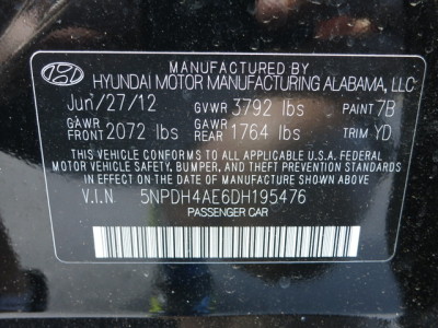 2013 HYUNDAI ELANTRA SEDAN LIMITED TECH – 23834