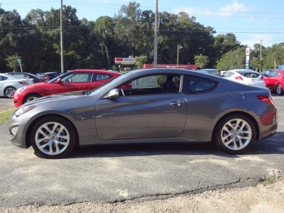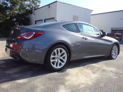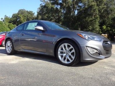 Vehicle Facts: Hyundai Genesis coupe returns for 2013 significantly redesigned, with more aggressive coupe styling, improved interior materials and technology enhancements to the 4-cylinder and V6 engines available * New for 2013 is direct-injection fuel technology for the 3.8-liter engine and an available 8-speed automatic transmission * The 2013 Hyundai Genesis Coupe is available with a 2.0-liter turbo engine in Base, R-Spec, and Premium trim levels or with a 3.8-liter engine in R-Spec, Grand Touring, and Track trim levels, each with a rear-wheel drive configuration * The 2013 Hyundai Genesis 2.0T models are powered by a 2.0-liter DOHC 16-valve I-4 turbocharged engine rated at 274 HP at 6000 RPM (Premium fuel; regular fuel 260 HP at 6000) with a torque rating of 275 lb.-ft. at 2000 RPM (Premium fuel; regular fuel 260 lb.-ft. at 2000 RPM) coupled with a 6-speed manual transmission or available 8-speed automatic transmission * The 2013 Hyundai Genesis 3.8 models are powered by a Lambda 3.8-liter DOHC GDI 24-valve V6 engine rated at 348 HP at 6400 RPM (Premium fuel; regular fuel 344 HP at 6400 RPM) with a torque rating of 295 lb.-ft. at 5100 RPM (Premium fuel; regular fuel 292 lb.-ft. at 5100 RPM) coupled with a 6-speed manual transmission or available 8-speed automatic transmission * * REASONS TO BUY: The available 3.8-liter engine utilizes dual continuously variable valve timing and a new Variable Intake System to help cylinders breathe more efficiently at both low and high RPMs, resulting in outstanding off-the-line acceleration and passing performance, as well as remarkable fuel efficiency * The MacPherson strut dual-link front suspension is mounted to the body via a solid subframe which is lighter and stronger than a multi-piece component would be * To help reduce body roll and tune the Genesis Coupe’s at-the-limit handling for maximum predictability, 24-mm diameter front and 19-mm diameter rear stabilizer bars are used (R-Spec & 3.8 Track) * The available track-tuned suspension features a stiffer front spring rate, stiffer rear spring rate and unique shock valving (R-Spec & 3.8 Track) * Models equipped with an automatic transmission feature steering-wheel-mounted paddle shifters * The available Xenon High Intensity Discharge headlamps provide greater lighting power, daylight-type lighting and reduced power consumption * Auxiliary input jacks come standard and include a 3.5-mm jack as well as a USB input to accommodate and charge audio devices * All Genesis Coupe models feature standard 4-channel ABS with Electronic Brake-force Distribution to optimize brake performance under various dynamic loading conditions * Brake Assist provides maximum braking force when a panic stop is detected * The Genesis Coupe is rich in ultra-high-strength steel, leading to world-class body rigidity * The instrument panel is crafted in a seamless, soft-touch skin fully encompassing the trim *