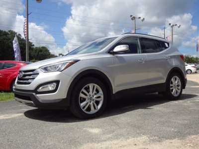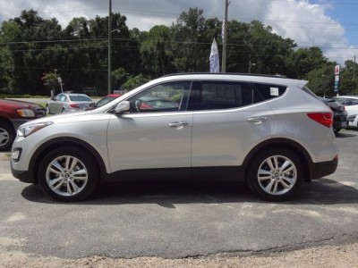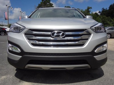 Vehicle Facts: All-new for 2013, the Santa Fe Sport features Fluidic Sculpture design and impressive fuel economy * The Santa Fe Sport features a shorter wheelbase and 2-row seating while the Santa Fe features a longer wheelbase and 3-row seating * The third-generation Santa Fe crossover showcases the Hyundai Fluidic Sculpture design and a host of functionality and technology features * The 2013 Hyundai Santa Fe is the first non-luxury crossover utility vehicle with Torque Vectoring Cornering Control and Driver Selectable Steering Mode for enhanced driving dynamics * The 2013 Hyundai Santa Fe Sport comes in a 5-Door body style and is available in Base or 2.0T trim levels, both in either a front- or all-wheel drive configuration * The 2013 Santa Fe Sport Base is powered by a Theta II 2.4-liter DOHC 16-valve I-4 engine rated at 190 HP at 6300 RPM with a torque rating of 181 lb.-ft. at 4250 RPM coupled with a 6-speed automatic transmission * The 2013 Santa Fe Sport 2.0T is powered by a Theta II 2.0-liter DOHC 16-valve I-4 turbocharged engine rated at 264 HP at 6000 RPM with a torque rating of 269 lb.-ft. at 1750-3000 RPM coupled with a 6-speed automatic transmission * * REASONS TO BUY: Continuously Variable Valve Timing on the intake and exhaust camshafts work in unison with the Variable Intake System to help the cylinders breathe efficiently at low and high RPMs, resulting in outstanding off-the-line acceleration and passing performance, as well as remarkable fuel efficiency * The available electronically-controlled all-wheel-drive system features a driver-selectable lock that creates a fixed 50/50 torque split between the front and rear wheels, which can improve performance in slippery or off-road conditions * The Eco Indicator on models equipped with the automatic transmission displays a green light on the instrument panel to indicate when driving habits are contributing to good fuel economy * Side Curtain airbags help protect the head and body during side impacts, and are activated when the rollover sensors detect a potential rollover, which triggers the head-curtain side airbags and safety belt pre-tensioners to help protect passengers against serious injury * Electronic Brake-force Distribution automatically adjusts the braking force to front and rear axles based on the vehicle loading conditions * Active front head restraints move upward and forward in certain rear-end collisions to help provide extra protection against whiplash * The Traction Control System reduces power and/or applies the brakes when wheel spin is detected, effectively rerouting power to the wheel with the greatest available traction * Brake Assist provides maximum braking force when a panic stop is detected *