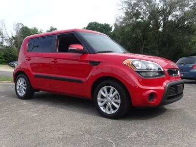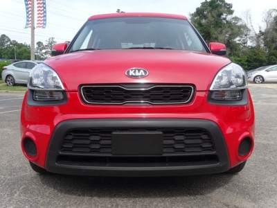 Vehicle Facts: Kia Soul returns for 2013 with only minor changes including power-folding exterior mirrors for ! Models and new exterior color choices * Kia introduced the Soul 5-door subcompact as all new in 2010, designed a stretched and stiffened version of the Rio platform * Kia Soul comes in Base, Soul+, and Soul! Trim variants with available ECO and Audio Upgrade packages * Kia Soul is introduced with a wide range of add-ons and color choices, including cabin décor options * Kia Soul Base models are powered by a 1.6-liter Gasoline Direct Injection 4-cylinder aluminum engine rated at 138 HP at 6300 RPM with a torque rating of 123 lbs.-ft. at 4850 RPM, coupled with a 6-speed manual transmission or 6-speed automatic transmission * Kia Soul+ and Soul! Models are powered by a 2.0-liter 4-cylinder cast-iron engine rated at 164 HP at 6500 RPM with a torque rating of 148 lbs.-ft. at 4800 RPM, coupled with a choice of 6-speed manual transmission or 6-speed automatic transmission * * REASONS TO BUY: The available Idle Stop and Go technology turns off the engine when the vehicle has come to a stop, and starts the engine again when the driver releases the brake pedal, thereby reducing fuel consumption * The lightweight DOHC 16-valve 4-cylinder aluminum engine employs continuously variable valve timing and Gasoline Direct Injection as part of the engineering that produces low fuel consumption and high mileage * The front-engine/front-wheel drive platform uses an independent MacPherson strut front suspension and torsion beam rear suspension for sure-footed handling * 4-wheel disc brakes use an anti-lock brake system to prevent wheel lock-up during aggressive stopping * Kia Soul is equipped with electronic stability control which uses the anti-lock brake sensors to control individual braking and engine speed in order to help ensure the vehicle follows the driver’s intended path * A tilt steering column adjusts to fit the driver’s ergonomic needs * Soul is equipped with a 12-volt auxiliary power outlet designed to power hand-held accessories * Solar glass cuts the intensity of UV radiation, helping maintain a more comfortable interior environment and preserve the interior upholstery * Dual advanced frontal airbags provide the driver and front passenger with supplemental restraint protection in the event of certain frontal impact collisions * Dual front seat-mounted side-impact airbags offer added protection to front seat occupants in the event of a side-impact collision * Full-length side curtain airbags deploy to protect both front and rear outboard passengers * A 3-point safety belt system is used in all seating positions, with the front safety belts equipped with pretensioners/force limiters to help mitigate restraint forces * For optimum protection, the front safety belts are height adjustable * Front seat active head restraints respond instantaneously to a rear collision impact by moving into the best position to protect the occupant *
