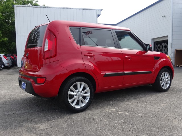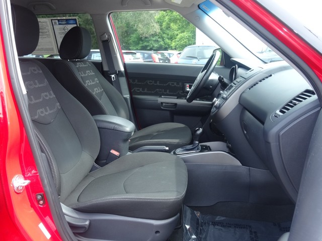 Vehicle Facts: Kia Soul returns for 2013 with only minor changes including power-folding exterior mirrors for ! Models and new exterior color choices * Kia introduced the Soul 5-door subcompact as all new in 2010, designed a stretched and stiffened version of the Rio platform * Kia Soul comes in Base, Soul+, and Soul! Trim variants with available ECO and Audio Upgrade packages * Kia Soul is introduced with a wide range of add-ons and color choices, including cabin décor options * Kia Soul Base models are powered by a 1.6-liter Gasoline Direct Injection 4-cylinder aluminum engine rated at 138 HP at 6300 RPM with a torque rating of 123 lbs.-ft. at 4850 RPM, coupled with a 6-speed manual transmission or 6-speed automatic transmission * Kia Soul+ and Soul! Models are powered by a 2.0-liter 4-cylinder cast-iron engine rated at 164 HP at 6500 RPM with a torque rating of 148 lbs.-ft. at 4800 RPM, coupled with a choice of 6-speed manual transmission or 6-speed automatic transmission * * REASONS TO BUY: The available Idle Stop and Go technology turns off the engine when the vehicle has come to a stop, and starts the engine again when the driver releases the brake pedal, thereby reducing fuel consumption * The lightweight DOHC 16-valve 4-cylinder aluminum engine employs continuously variable valve timing and Gasoline Direct Injection as part of the engineering that produces low fuel consumption and high mileage * The front-engine/front-wheel drive platform uses an independent MacPherson strut front suspension and torsion beam rear suspension for sure-footed handling * 4-wheel disc brakes use an anti-lock brake system to prevent wheel lock-up during aggressive stopping * Kia Soul is equipped with electronic stability control which uses the anti-lock brake sensors to control individual braking and engine speed in order to help ensure the vehicle follows the driver’s intended path * A tilt steering column adjusts to fit the driver’s ergonomic needs * Soul is equipped with a 12-volt auxiliary power outlet designed to power hand-held accessories * Solar glass cuts the intensity of UV radiation, helping maintain a more comfortable interior environment and preserve the interior upholstery * Dual advanced frontal airbags provide the driver and front passenger with supplemental restraint protection in the event of certain frontal impact collisions * Dual front seat-mounted side-impact airbags offer added protection to front seat occupants in the event of a side-impact collision * Full-length side curtain airbags deploy to protect both front and rear outboard passengers * A 3-point safety belt system is used in all seating positions, with the front safety belts equipped with pretensioners/force limiters to help mitigate restraint forces * For optimum protection, the front safety belts are height adjustable * Front seat active head restraints respond instantaneously to a rear collision impact by moving into the best position to protect the occupant *