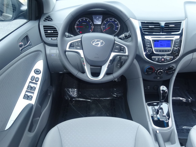 Vehicle Facts: Hyundai Accent returns for 2014 with new standard equipment that includes one-touch triple turn signal, sliding sun visors and a driver’s blind spot mirror * For 2014, the standard audio system has been upgraded for improved voice recognition and button layout, and the Premium Package has been enhanced * The current generation Hyundai Accent is in its third generation of production * The Hyundai Accent engine was selected as one of Ward’s 10 Best Engines in 2012; the engine employs Gasoline Direct Injection, the first to introduce GDI to the subcompact category * Hyundai Accent comes in a 4-door body style in GLS trim or a 5-door body style in GS and SE trims * A Premium Package is available on GLS models * Hyundai Accent is powered by a 1.6-liter DOHC 16-valve I-4 engine rated at 138 HP at 6300 RPM with a torque rating of 123 lb.-ft. at 4850 RPM coupled with a 6-speed manual transmission or optional 6-speed automatic transmission * * REASONS TO BUY: The engine’s Gasoline Direct Injection precisely controls the injection of fuel, improving fuel economy * Dual Continuously Variable Valve Timing increases efficiency and improves fuel economy * A maintenance-free silent roller timing chain increases reliability and reduces operating costs * A Diamond Like Coating helps reduce friction in the valvetrain * Hydraulic engine mounts offer quieter operation * Anti-lock disc brakes help the driver maintain vehicle steering control in slippery conditions and in emergency maneuvers * Electronic brake force distribution is integrated into the ABS, automatically adjusting the braking force to front & rear axles based on the vehicle loading conditions * Five-mph front & rear bumpers help minimize damage in low speed impacts * In the event of hard collisions the steel unibody structure is engineered to dissipate crash energy as its crumple zones deform, while bodyside reinforcements help maintain the integrity of the passenger compartment * Hood buckling creases and safety stops help control the deformation of the hood in a frontal collision * The rear head restraints are shingle-style for improved visibility * Child seat LATCH system in the rear seat area provides a safe & secure place for kids * Front seatbelts are equipped with force limiters and pretensioners that regulate tension in the event of a moderate-to-severe frontal collision * Reinforced bumpers help absorb shock in low-speed accidents * Front disc brakes are engineered with brake pad wear sensors to indicate when pads need replacing * A computer chip in the automatic transmission allows the transaxle to adapt to different driving situations; when necessary the transmission can skip a downshift to reduce the number of shifts when decelerating * A front subframe adds structural rigidity to the vehicle, creating more strength and less torsional stress, which results in a firmness that resists the development of rattles and squeaks *